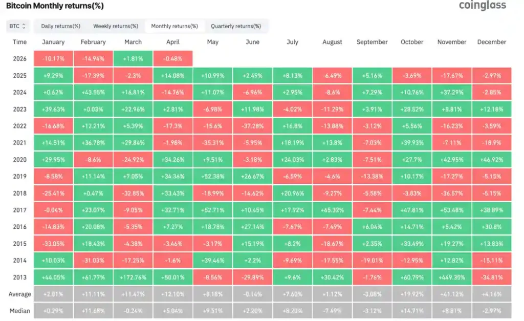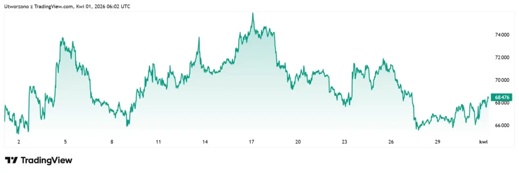 Na początku kwietnia kurs krąży w okolicach 67 tys. dolarów, ale zamiast dynamicznego ruchu w górę widzimy raczej wahania i brak zdecydowania. To szczególnie niepokojące, bo historycznie kwiecień należał do najlepszych miesięcy dla Bitcoina. Tym razem rynek zdaje się kompletnie ignorować statystyki.