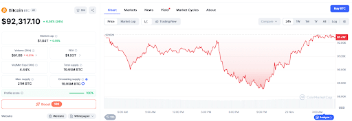 Bitcoin pokazał ogromną siłę w ciągu ostatnich 24 godzin, odbudowując zaufanie wśród entuzjastów. Krótko po tym, jak w środę spadł do nowego minimum 88 500 dolarów, kryptowaluta szczytowa szybko odbiła się wczesnym rankiem w czwartek, powracając do poziomu 92 000 dolarów.