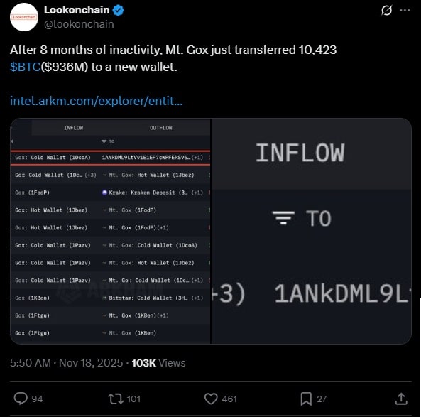 Platforma analityczna Arkham Intelligence kilka godzin temu ujawniła, że Mt. Gox przelała 10 608 BTC o wartości 956 mln dolarów na dwa adresy portfeli, w tym jeden nieoznaczony. Cel tych ruchów jest niejasny, ale wiele wskazuje na to, że to kontynuacja opisanej wyżej akcji zwrotu należności wierzycielom.
