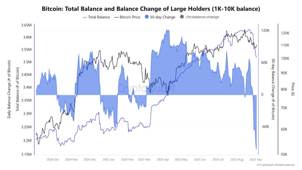 Ostatnie tygodnie przyniosły na rynku Bitcoina coś, co trudno było przeoczyć. Mianowicie potężną falę wyprzedaży ze strony największych graczy. W ciągu zaledwie miesiąca z portfeli tzw. wielorybów zniknęło ponad 115 tys. BTC, czyli równowartość ok. 12,7 mld dolarów. To największa redukcja pozycji od połowy 2022 roku. Na pierwszy rzut oka wygląda to jak sygnał alarmowy – duzi inwestorzy kapitulują, a cena spada poniżej 108 tys. USD. Jednak przy bliższym spojrzeniu obraz staje się bardziej zniuansowany.