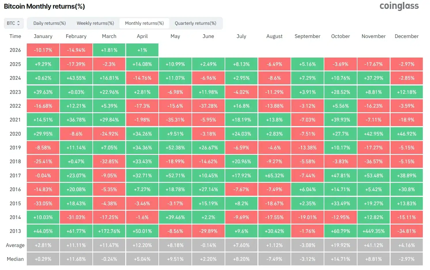 Dotychczas, gdy Bitcoin kończył kilkumiesięczną serię spadków, trend się odwracał, a token zaczął zyskiwać na wartości. Jednak jeśli przyjrzymy się obecnej sytuacji bardziej wnikliwie, optymizm maleje. W przeszłości, gdy Bitcoin odwracał trend, sygnał był bardzo wyraźny. Po wspomnianej serii spadków z lat 2018-2019 pierwszy miesiąc odbicia był wyraźnie lepszy (11,14%). W listopadzie 2014 roku, kiedy BTC kończył serię czterech spadkowych miesięcy, wzrósł o 12,82%. Za każdym razem, kiedy token przerywał trzymiesięczną serię spadków, wyraźnie odbijał od kilkunastu do nawet kilkudziesięciu procent.