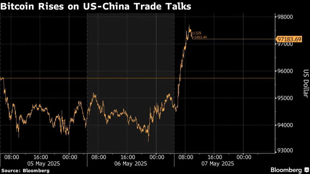 Poza informacją o skupie Bitcoina w New Hampshire, rynek wsparły też informacje o negocjacjach USA – Chiny, które mają odbyć się w weekend. Względem minimów na poziomie 77 tys. dolarów Bitcoin odbił do ok. 97,5 tys. dolarów i obecnie wydaje się być w drodze do testu dwóch kluczowych stref oporu. Psychologicznej, przy 100 tys. i historycznego szczytu na poziomie 109 tys. dolarów. Co dokładnie stało się w Stanach Zjednoczonych i skąd decyzja New Hampshire?
