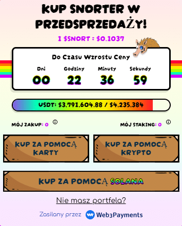 Presale Snortera zebrało już ponad 3 mln USD, a token sprzedawany jest w cenie 0,1011 USD. Projekt oferuje m.in.: