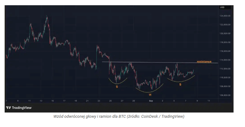 Na wykresie Bitcoina kształtuje się odwrócona formacja głowy i ramion (H&S), uznawana przez analityków za jeden z najbardziej wiarygodnych sygnałów odwrócenia trendu spadkowego.