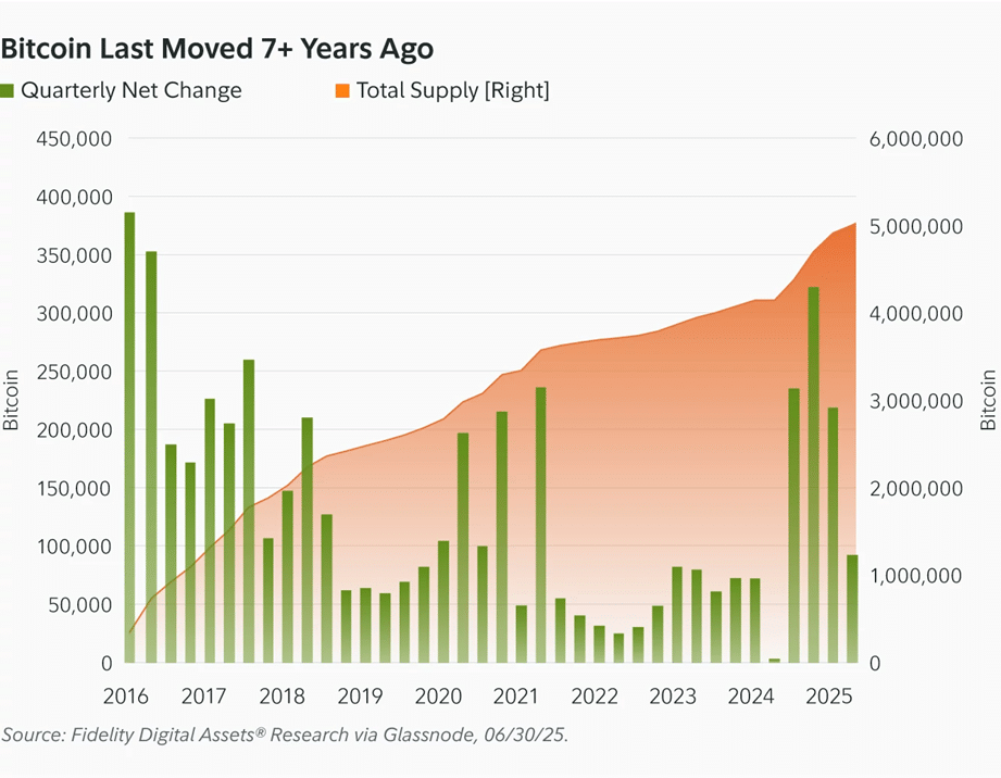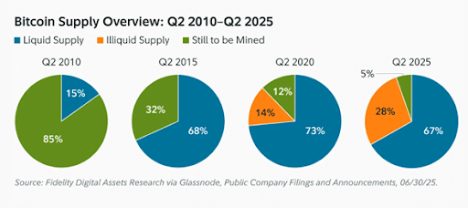Koncentracja niepłynnych Bitcoinów wiąże się nie tylko ze zmniejszeniem dostępnej podaży, ale także z wykładniczym wzrostem przechowywanego bogactwa. Fidelity szacuje, że do końca czerwca 2025 r. grupa ta posiadała ponad 628 mld dolarów. – “ponad dwukrotnie więcej niż w tym samym okresie ubiegłego roku.”