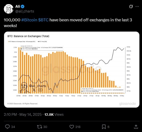 Jak poinformował Ali Martinez, w ciągu ostatnich trzech tygodni wieloryby wycofały z giełd 100 tys. Bitcoinów. To sugeruje, że duzi gracze szykują się na jeszcze większą pompę, ale wolą przechować swoje tokeny w bezpieczniejszym miejscu, niż giełdy. Jednocześnie kupujących na wciąż nie brakuje. Szczególnie wśród gigantów instytucjonalnych, jak BlackRock, Ark Invest, czy Fidelity.