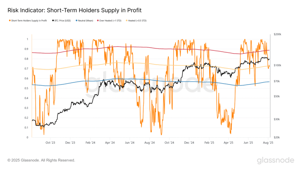 Obecnie cena BTC porusza się w „ciepłej”, ale jeszcze nieprzegrzanej strefie i wciąż utrzymuje się powyżej kosztu bazowego STH (short-term holders), który wynosi ok. 106 tys. USD. Taki układ jest całkowicie typowy dla hossy na Bitcoinie – w przeszłości właśnie ten poziom wielokrotnie wyznaczał granicę między krótkoterminowym trendem wzrostowym a spadkowym.