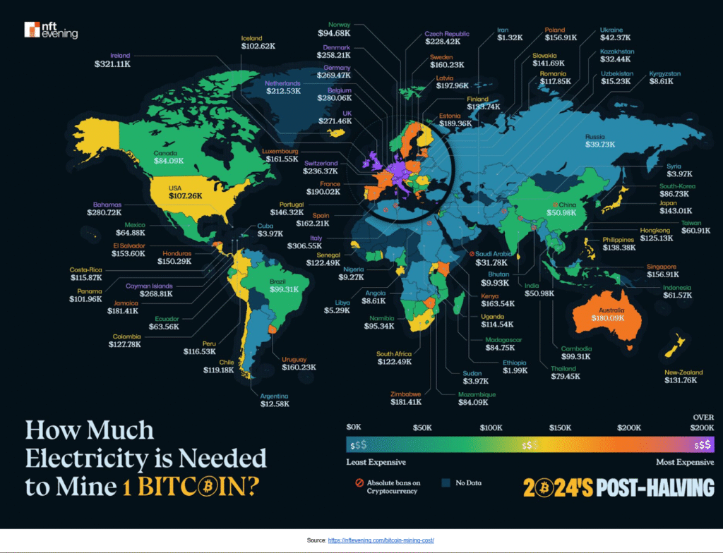 W niektórych krajach wydobycie stało się wręcz nieopłacalne. Irlandia? Koszt wytworzenia jednego BTC to 321 111 USD, czyli ponad trzykrotnie więcej niż jego obecna wartość. W Stanach Zjednoczonych, które odpowiadają za największą część globalnego hashpowera, średni koszt oscyluje wokół 107 260 USD – co przy kursie 103 k USD praktycznie zeruje marże.