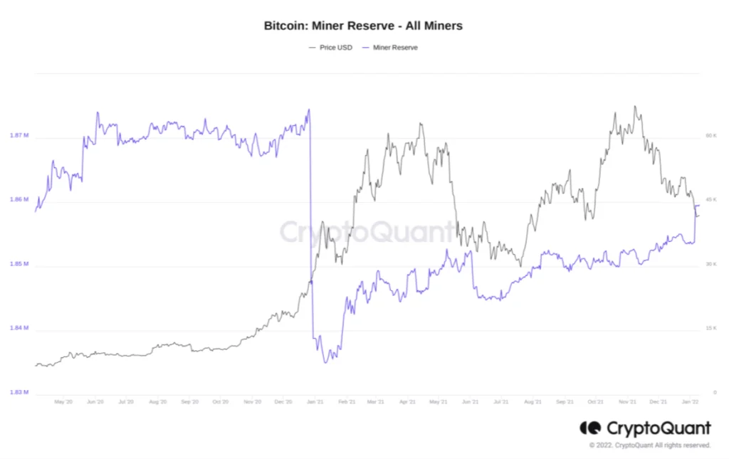 Według danych aktualnych na dzień 11.01, poziom całkowitych rezerw BTC górników wyniósł 1,859 mln. To najwięcej od czasu wyraźnej redukcji pod koniec 2020 r., po tym, jak BTC/USD przekroczył poprzednie rekordy wszech czasów z 2017 r.