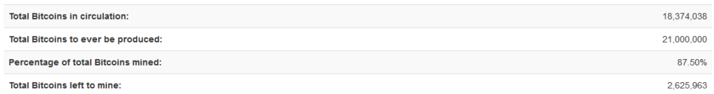 Halving jest tak ważny, ponieważ oznacza kolejny krok w malejącej, skończonej podaży Bitcoin. Istnieje tylko 21 000 000 bitcoinów. W chwili pisania tego artykułu wydobytych jest już 18 374 038 BTC. Pozostało „jedynie” 2 625 963: