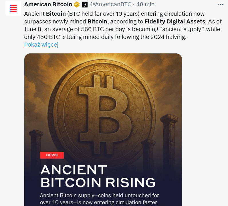 Mimo niepewności i geopolitycznych zawirowań (takich jak wojna Izrael–Iran), dane z IntoTheBlock pokazują, że aż 88,88% posiadaczy BTC jest obecnie na plusie. Czyli prawie nikt nie chce sprzedawać. Przynajmniej nie teraz. A gdy dodamy do tego fakt, że ruchy na giełdach, zarówno wielorybów, jak i mniejszych rybek – praktycznie zamarły, to obraz robi się jasny: nikt nie chce oddać swojego Bitcoina.