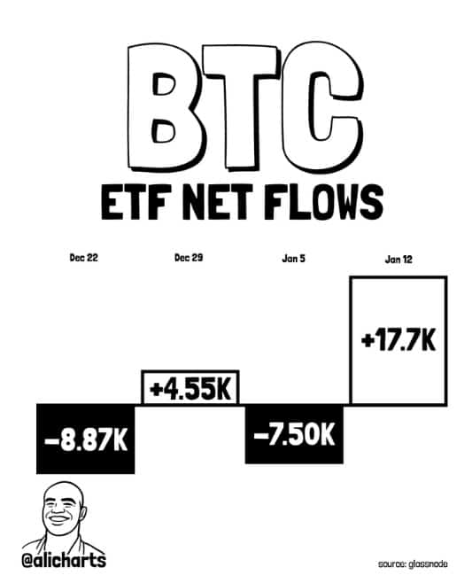 Co ciekawe, analityk Ali Martinez rzucił nowe światło na kwestię o tym imponującym trendzie akumulacji. Dodał, że wieloryby zgromadziły w tym tygodniu 17 700 BTC, w porównaniu do 7500 BTC sprzedanych w zeszłym tygodniu.