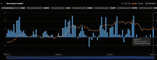 Tymczasem niweczy to zachowanie wielorybów ETF z zeszłego tygodnia. Wówczas upłynnili oni 681 milionów dolarów w Bitcoinie. Niedawna akumulacja przyczyniła się do odbicia kursu aktywa powyżej 95 000 dolarów i przywróciła ich byczą perspektywę.