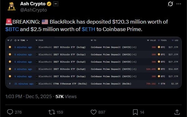 Ash Crypto poinformował na swoim X, że gigant przeniósł na Coinbase Prime Bitcoiny o wartości 120,3 mln dolarów oraz Ethereum za 2,5 mln dolarów. Tego typu transfery wprowadzją niepokój i obawy na rynku. Ale czy strach jest uzasadniony?