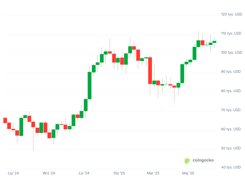 Tuż po ujawnieniu transakcji BlackRocka kurs BTC podskoczył powyżej 105 500 dolarów za sztukę, lecz pozostaje o kilka tysięcy poniżej tygodniowego szczytu 109 714 USD. W chwili pisania tych słów bitcoin oscyluje w okolicach 104 300 USD.