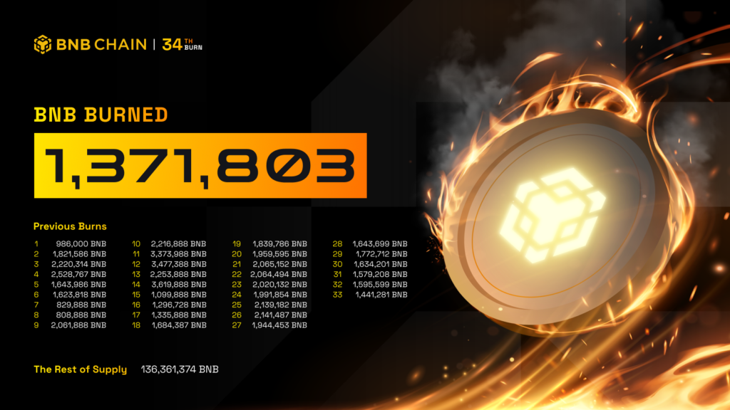 Ekosystem BNB zakończył 34. zaplanowane spalanie tokenów, kontynuując swoją długoterminową strategię zmniejszenia podaży BNB w obiegu.