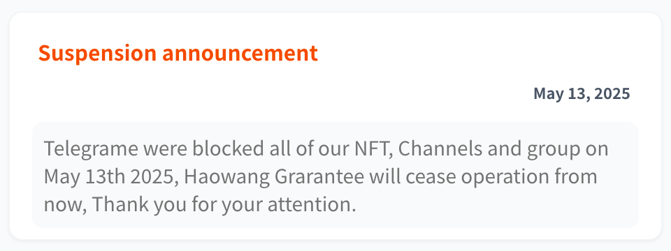 Po pierwszej fali kasacji kanałów TG w lutym br. rynek zdołał się odrodzić dzięki zapasowym grupom i przekierowaniu nazw użytkownika (sprzedawanych jako tokeny niezamienne, tj. NFT). W ostatniej akcji Telegram poszedł jednak dalej: nie tylko usunął kanały, lecz także zbanował same nazwy, co uniemożliwiło ponowne wypromowanie nowych grup. Tego samego dnia Huione ogłosiło trwałe zamknięcie biznesu, zachęcając jednocześnie sprzedawców do migracji na powiązany z nim Tudou Guarantee, w którym to spółka ma 30% udziałów. Zaledwie kilka dni później liczba użytkowników Tudou skoczyła precyzyjnie o ok. 30%.