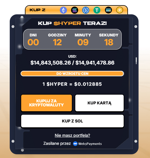 Dodatkowo zbliżające się zakończenie przedsprzedaży tokenów HYPER tworzy presję czasową. Obecna cena tokena to 0,012885 USD, jednak w ciągu kilkunastu godzin zostanie podniesiona.
