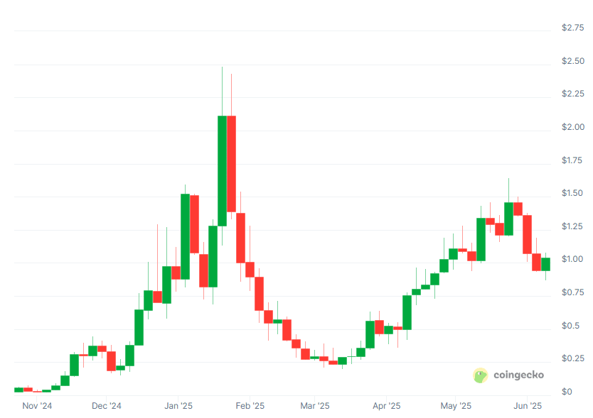 Odkąd 5 czerwca pojawił się na mapie drogowej Coinbase, kurs urósł o kolejne kilkanaście procent, a analitycy spekulują, że listing na giełdzie może podbić cenę nawet w okolice 2 USD – choć sami przyznają, że wycena memecoinów rządzi się logiką memów, a nie fundamentów.