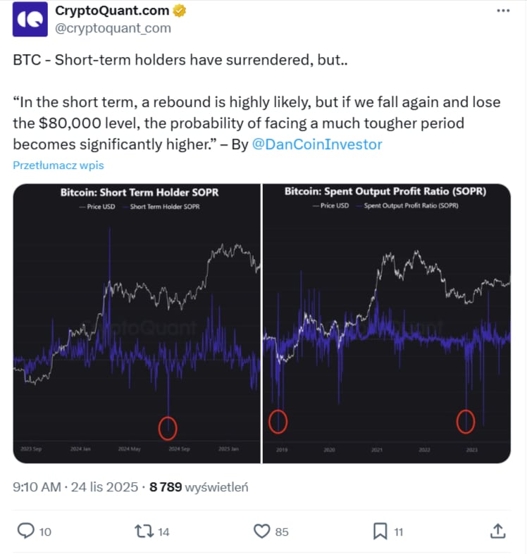 Crypto Dan widzi oznaki kapitulacji wśród krótkoterminowych posiadaczy oraz zmianę nastrojów z pozytywnych na negatywne. Obecna aktywność rynkowa przypomina lokalne dołki poprzednich korekt w ramach obecnej fazy byka.