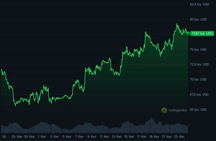 Równolegle wartość otwartych pozycji w kontraktach terminowych na BTC na giełdzie CME (Chicago Mercantile Exchange) spadła do około 8,4 mld dolarów – najniżej od czternastu miesięcy. Zazwyczaj taki ruch odczytuje się jako niepokojący, ale Lee interpretuje go inaczej: rynek redukuje dźwignię finansową, a popyt przenosi się na rynek spot. To oznacza, że obecne umacnianie się kursu w kierunku 80 000 dolarów stoi na solidniejszym fundamencie niż poprzednie odbicia napędzane wolumenem instrumentów pochodnych.
