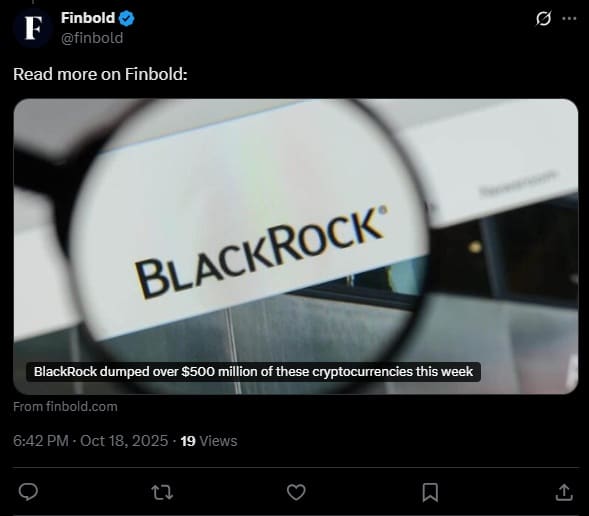Chociaż krach z zeszłego weekendu był jednym z największych wstrząsów w historii rynku kryptowalut, to pierwsze komentarze były uspokajające. Ten tydzień szybko pokazała, że sytuacja jest dużo bardziej poważna, niż wydawało się na początku. Kryptowaluty kontynuowały spadki, a kapitał, choć już nie tak masowo, to dalej odpływał. Jak zwykle w takich momentach uaktywniały się wieloryby. Kilka tokenów na tym zyskało, ale są też sygnały, które można potraktować jako sygnał ostrzegawczy. Od pewnego czasu ważną wskazówką dla uczestników rynku jest aktywność BlackRock. Oto jak wyglądał ten tydzień w wykonaniu giganta.