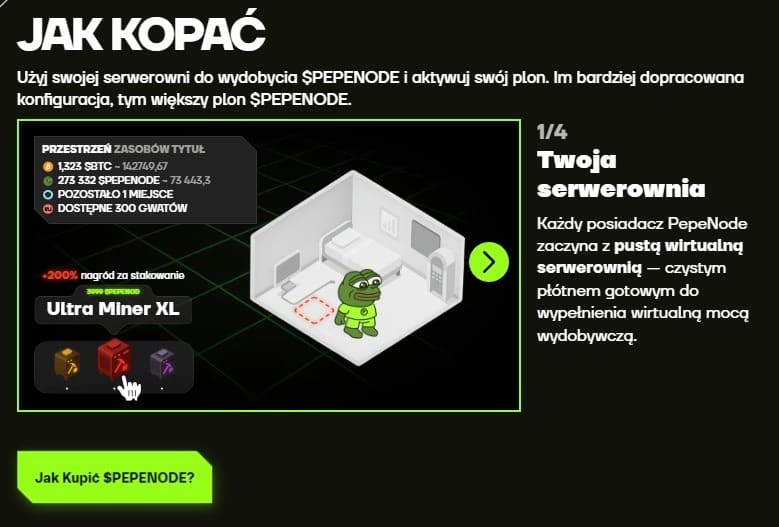 Na tym tle PepeNode pojawia się jako świeży powiew innowacji. Zamiast kopać fizycznie, użytkownicy kopią wirtualnie – w środowisku przypominającym strategię ekonomiczną, w której zarabia się poprzez budowę i rozwój cyfrowych serwerowni.