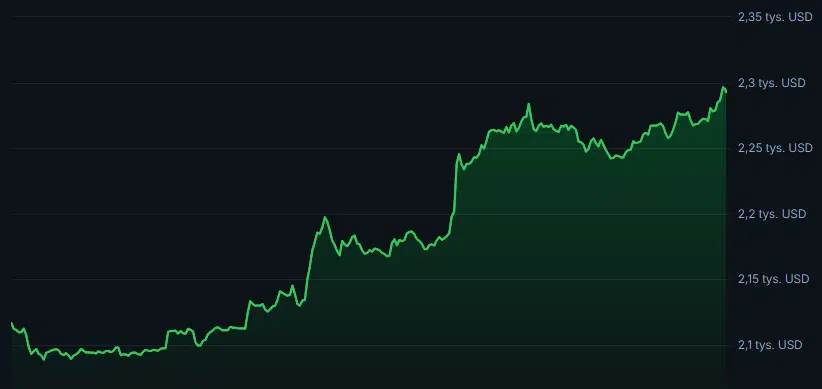 Ethereum żyje! W poniedziałek 16 marca 2026 roku kurs drugiej największej kryptowaluty świata wrócił w okolice 2300 dolarów za token, a na części platform nawet chwilowo przebił ten poziom. To mocne odbicie, zwłaszcza jeśli wziąc pod uwagę, że jeszcze niedawno inwestorzy patrzyli na ETH znacznie bardziej krytycznie, a sam rynek pozostawał pod presją szerokiej przeceny aktywów ryzykownych. Dane rynkowe wskazują, że cena Ethereum buja się dziś w rejonie około 2279–2300 dolarów, przy wyraźnie podwyższonej zmienności.
