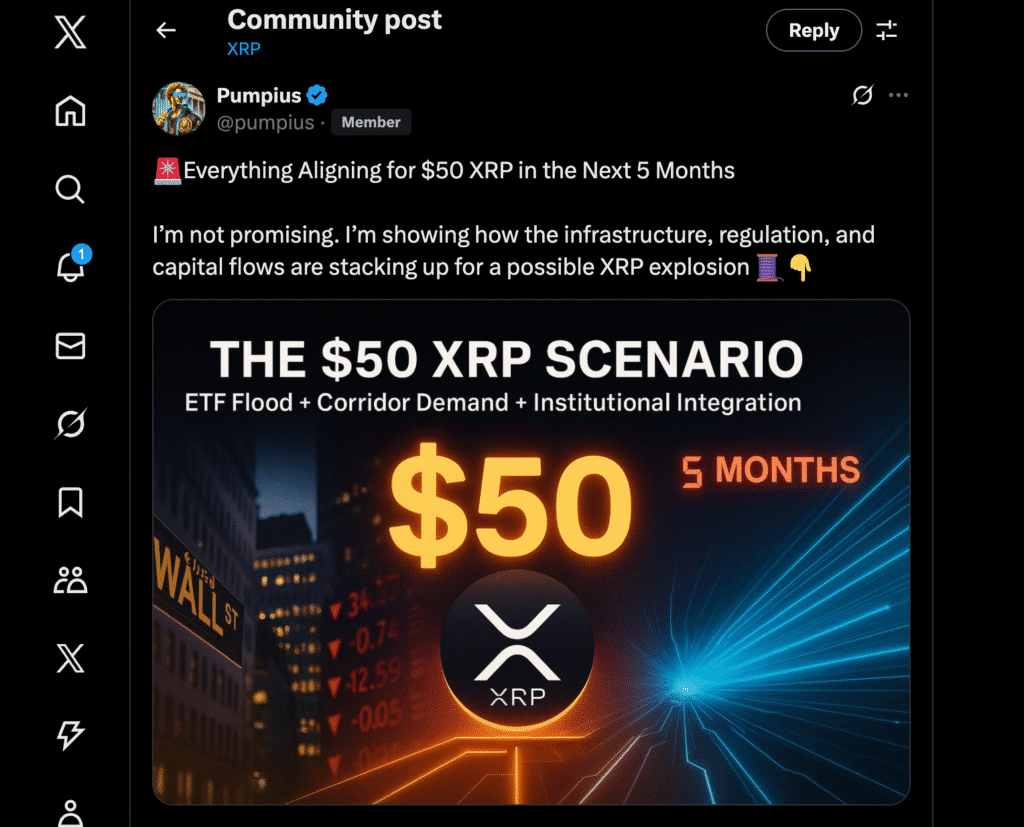 Pompaius, doświadczony posiadacz Bitcoinów z ponad dziesięcioletnim doświadczeniem na rynku kryptowalut, wskazał śmiałą prognozę dla XRP. Twierdzi, że może wzrosnąć do 50 dolarów w ciągu najbliższych pięciu miesięcy.