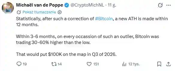 Słabość Bitcoina względem indeksów giełdowych wynika częściowo z ogromnej presji podażowej generowanej przez publiczne spółki wydobywcze. W pierwszym kwartale bieżącego roku górnicy sprzedali rekordowe 32 000 BTC, co przewyższa wolumen z całego 2025 roku oraz wyprzedaż po upadku projektu Terra w 2022 roku. Tak duża podaż ze strony sektora wydobywczego sugeruje, że marże operacyjne w branży pozostają pod silną presją mimo wzrostu cen. Ostatnia korekta trudności wydobycia o 2,43 procent w dół do poziomu 135,59 bln jednostek potwierdza trudną sytuację ekonomiczną górników. Hashrate sieci zdołał się jednak nieznacznie odbudować do poziomu 992 EH/s, co daje pewną nadzieję na stabilizację infrastruktury. Eksperci wskazują, że każda próba trwałego wyjścia powyżej zakresu 76 000 USD do 80 000 USD będzie musiała zostać wchłonięta przez rynek przy ciągłej sprzedaży ze strony producentów Bitcoina. Wiele wskazuje na to, że sektor wydobywczy traktuje obecne wzrosty jako okazję do upłynniania zapasów w celu ratowania płynności finansowej. Sytuację tę skomentował znany analityk rynkowy Michael van de Poppe, wskazując, że Bitcoin walczy o przełamanie kluczowych oporów, podczas gdy rynek czeka na impuls z makroekonomii . Brak zdecydowanego ruchu w górę przy dobrych nastrojach na giełdach w Nowym Jorku i Azji sugeruje, że kryptowaluta musi najpierw oczyścić się z nadmiaru krótkich pozycji.