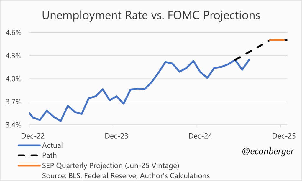 Według Bergera ważniejsze jest bezrobocie ogólne. Prognoza na ten miesiąc mówi o wzroście do 4,3%. Mimo tego poziom nadal uchodzi za niski w ujęciu historycznym. Co ciekawe, jest on wciąż korzystniejszy niż przewidywał Fed kilka miesięcy wcześniej.