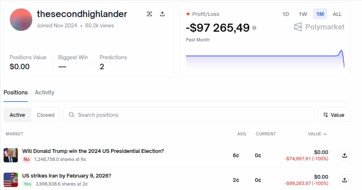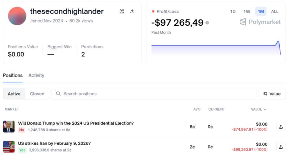 Historia tego tradera zaczęła się w listopadzie 2024 roku, kiedy to zasilił on swój portfel imponującą kwotą wynoszącą niemal 500 000 USD. Jego początki nie należały jednak do udanych, ponieważ zainwestował on znaczące środki w zakład przeciwko wygranej Donalda Trumpa w wyborach prezydenckich w USA. Porażka ta kosztowała go dokładnie 74 997 USD, co dla wielu spekulantów byłoby ciosem kończącym karierę na rynku. Po tej stracie portfel gracza, w którym wciąż znajdowało się około 425 000 USD, zamarł na czternaście miesięcy. Nikt nie spodziewał się, że to nagłe milczenie zostanie przerwane w tak dramatycznych okolicznościach, jakie obserwujemy obecnie w kontekście napięć na Bliskim Wschodzie.