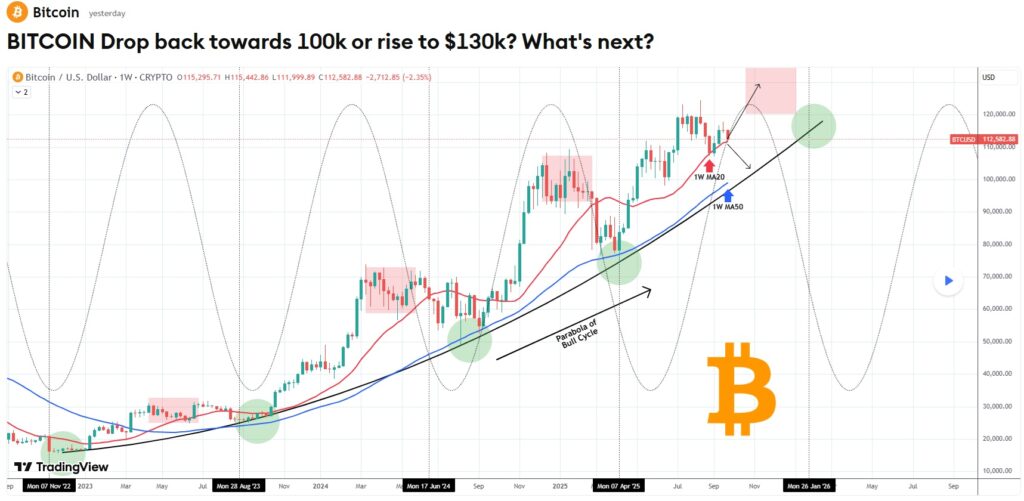 Eksperci i posiadacze kryptowaluty starają się ustalić, czy straty będą się powiększać, czy to tylko chwilowa zawierucha. Głos w sprawie zabrał również ceniony analityk TradingShot. W najnowszej analizie ekspert ocenił, że kryptowaluta testuje swoją 20-tygodniową średnią kroczącą (MA) w pobliżu 112 500 USD. TO poziom, który wcześniej stanowił punkt odbicia do ostatniej części poprzednich cykli wzrostowych.