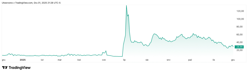 Mimo poniedziałkowego tąpnięcia akcje BitMine nadal są jednymi z największych tegorocznych zwycięzców. W ujęciu rok do roku firma jest prawie 300% na plusie.