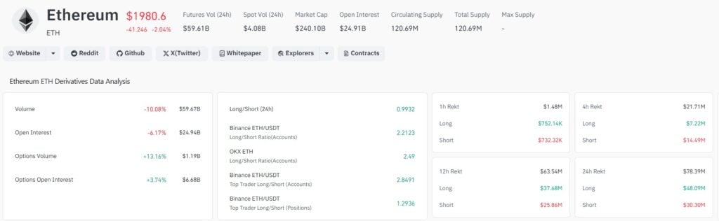 Na pierwszy rzut oka rynek wydaje się schłodzony. Wolumen spot obniżył się do 25 mld dolarów, a dane z CoinGlass pokazują spadek aktywności na rynku instrumentów pochodnych. Open interest zmniejszył się o ponad 5%, co sugeruje redukcję ryzykownych pozycji przez traderów.