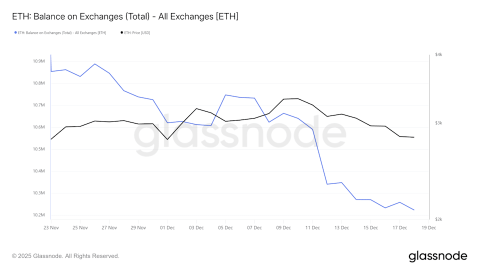 Kolejnym elementem układanki są przepływy ETH na scentralizowanych giełdach. Od początku miesiąca z platform handlowych zniknęło około 397 495 ETH. Przy obecnych cenach mówimy o wartości przekraczającej 1,17 miliarda dolarów. To nie jest ruch przypadkowy.
