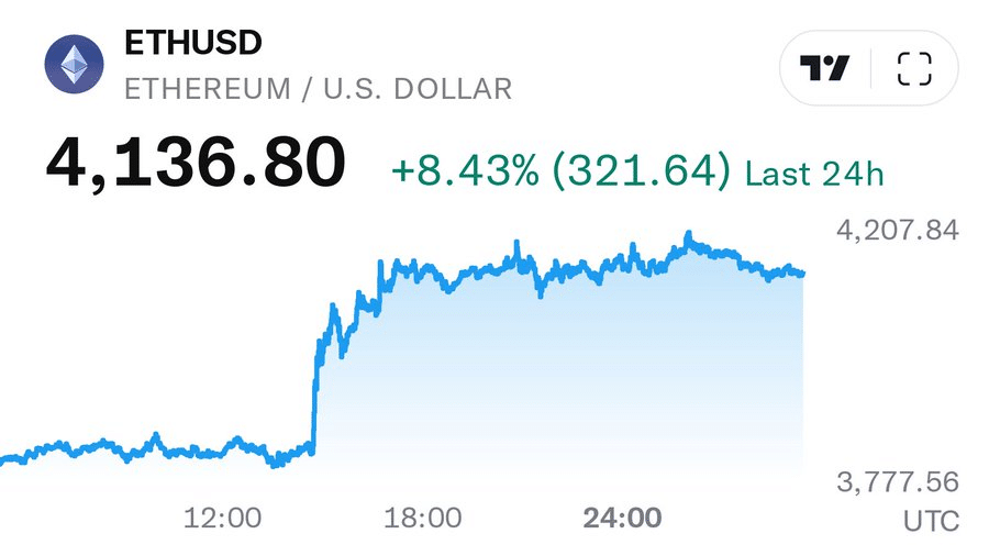 Ethereum wraca do gry po handlowym chaosie. Trump i Xi „źle się zrozumieli”, rynek odetchnął