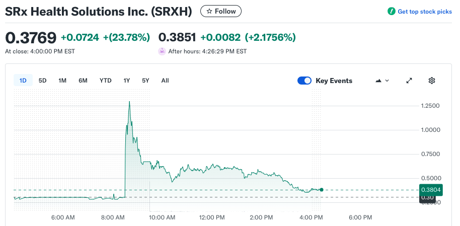 Strategia EMJX zakłada wieloaktywną ekspozycję na rynek krypto, dynamiczne alokowanie kapitału, hedging, reinwestowanie zysków oraz zarządzanie ryzykiem na podstawie modeli i sztucznej inteligencji. Inwestorzy zareagowali natychmiast. Akcje SRx Health Solutions wystrzeliły o ponad 130%. Ostatecznie sesję zamknęli na blisko 24-procentowym wzroście.