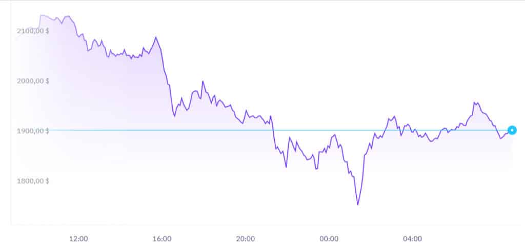 Ethereum, będące drugą pod względem kapitalizacji cyfrową walutą, odnotowało dramatyczny spadek o 10% w ciągu zaledwie jednego dnia, osiągając w czwartek poziom 1911 USD.