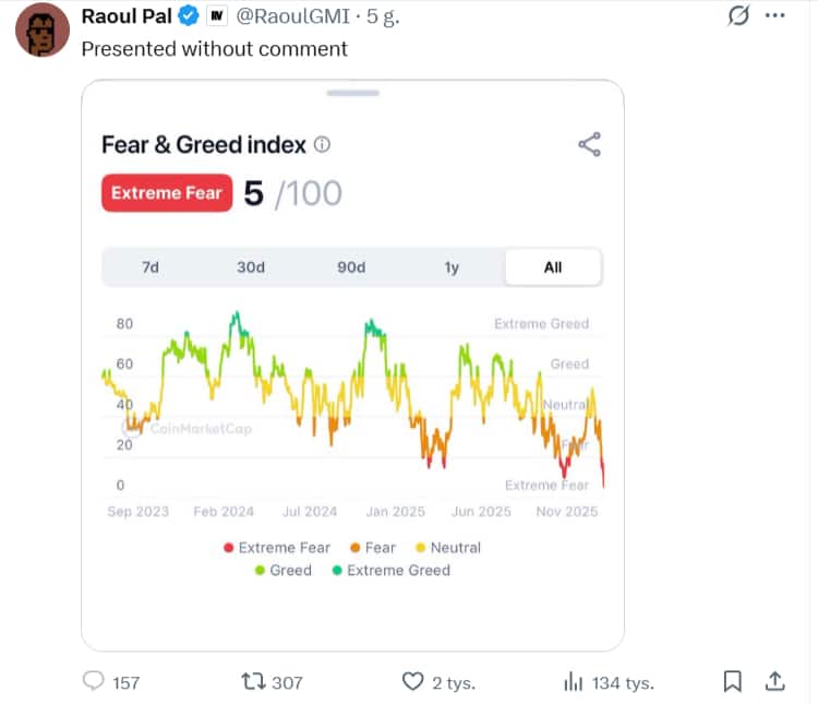 Wydarzenia z początku lutego 2026 roku pokazują, że korelacja aktywów cyfrowych z sektorem technologicznym pozostaje silna, a ucieczka od ryzyka na Wall Street bezpośrednio uderza w kryptowaluty. Znany analityk Raoul Pal zauważył na platformie X, że obecne spadki wynikają przede wszystkim z niskiej płynności w Stanach Zjednoczonych, a nie z problemów specyficznych dla samej technologii blockchain.