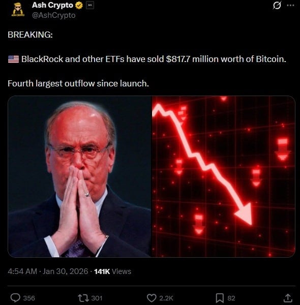 Ostatnie dni przyniosły sporo zawirowań na rynkach finansowych, ale szczególnie niepokojąco wygląda sytuacja Bitcoina. Kurs największej kryptowaluty zanurkował do poziomów, które notował ostatnio na poczatku kwietnia 2025 roku. Kryzys dodatkowo napędzają odpływy z funduszy spotowych. Kapitał z ETF-ów odpływa kolejny dzień z rzędu. Wczoraj BlackRock zanotował czwarty największy odpływ środków w historii notowań.