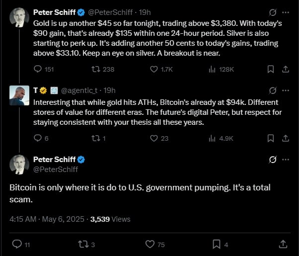 Czy uczestników rynku zniechęcają opinie podobne do tych, które prezentuje Peter Schiff? Wczoraj znany ekspert stwierdził, że „Bitcoin jest tam, gdzie jest, tylko dzięki pompowaniu przez rząd USA”oraz że ten token to „totalny scam”. Wydaje się, że takie opinie nie mają aż takiego znaczenia. Krytyka Bitcoina nie jest niczym nowym. Ciekawsze wydaje się pytanie — która grupa inwestorów ma rację?