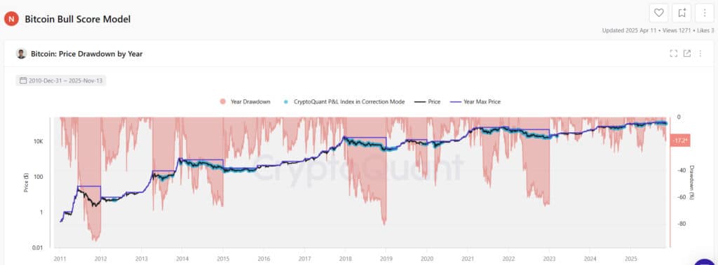 W podobnym tonie wypowiada się Maarten Regterschot, analityk firmy CryptoQuant. Jak zauważa, wskaźnik Bull Score tejże firmy wskazuje terytorium rynku niedźwiedzia – aż 8 z 10 kluczowych wskaźników on-chain jest niedźwiedzich. Podkreśla on, że spadek płynności stablecoinów, zanikanie aktywności sieciowej i odpływ kapitału z instrumentów pochodnych odzwierciedlają sytuację z końca 2021 i początku 2022 roku.