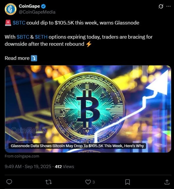 Według danych Glassnode 95% posiadaczy odnotowuje zyski, co zwiększa ryzyko realizacji zysków. To główne zagrożenie dla Bitcoina w najbliższych dniach. Jeśli inwestorzy masowo ruszą, by realizować zyski. Eksperci sądzą, że byki muszą utrzymać poziom powyżej 115,2 tys. USD, aby kontynuować wzrosty. Konsekwentny spadek może spowodować krach Bitcoina do 105,5 tys. USD. Większość opcji wygasa przy poziomie 110 tys. dolarów.