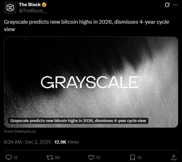 Grayscale wskazuje cenę Bitcoina na 2026 rok. Pierwsza instytucja, która porzuci kryptowaluty?