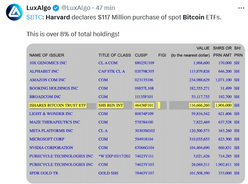 Harvard wchodzi w Bitcoina. 120 mln dolarów w BlackRock ETF