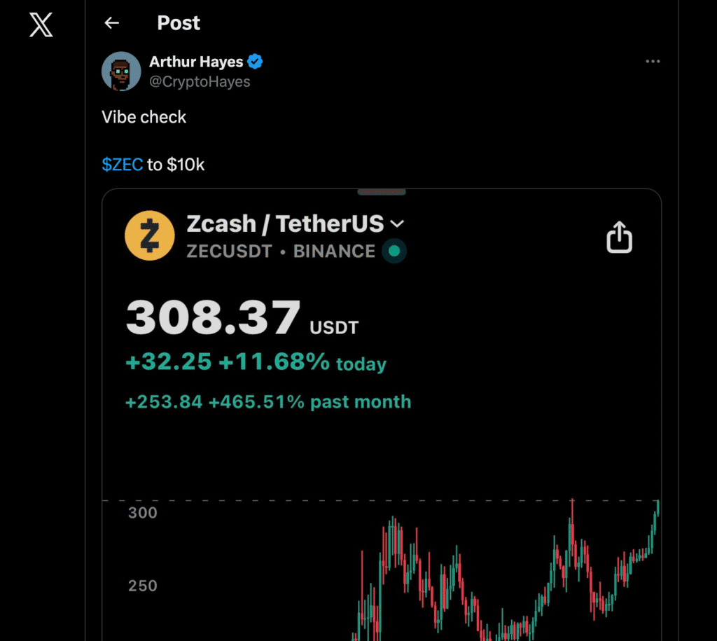 Zcash rośnie o 25%, Hayes przewiduje cel 10 tys. dolarów