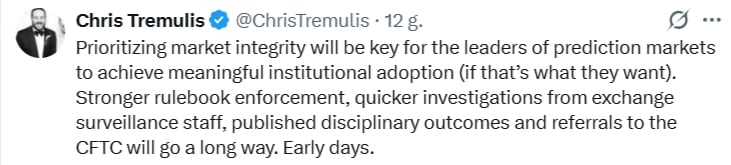 Cała ta akcja wywołała burzliwą dyskusję na temat etyki i regulacji w sektorze zdecentralizowanych rynków predykcyjnych. Chris Tremulis, pełniący funkcję globalnego szefa ds. zgodności towarowej w Goldman Sachs, podkreślił w mediach społecznościowych, że ochrona integralności rynku jest niezbędna do przyciągnięcia kapitału instytucjonalnego.