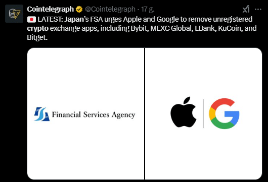 Decyzja o usunięciu aplikacji to efekt działań Financial Services Agency (FSA). Od miesięcy przestrzegali te giełdy, że działają w Japonii bez oficjalnej rejestracji. KuCoin, Bybit, Bitget i MEXC otrzymały stosowne listy już w listopadzie 2023 roku, a LBank jeszcze wcześniej – w czerwcu. Teraz Apple postanowiło dostosować się do żądań regulatora i usunęło aplikacje ze swojego sklepu. Google na razie pozostaje bierne i jak do tej pory nie reaguje na wezwania agencji.