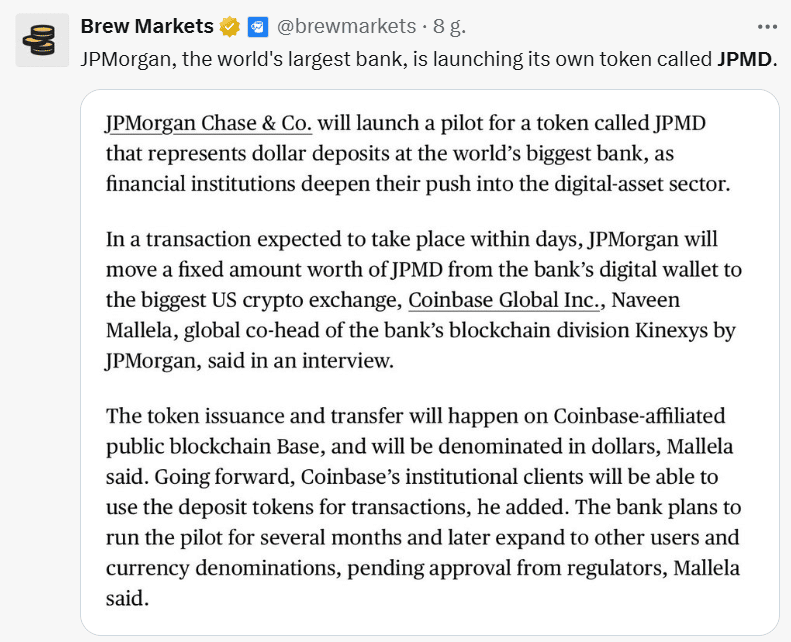 JPMorgan ujawnia szczegóły swojego wielkiego kryptoplanu. „To coś więcej niż stablecoin!”